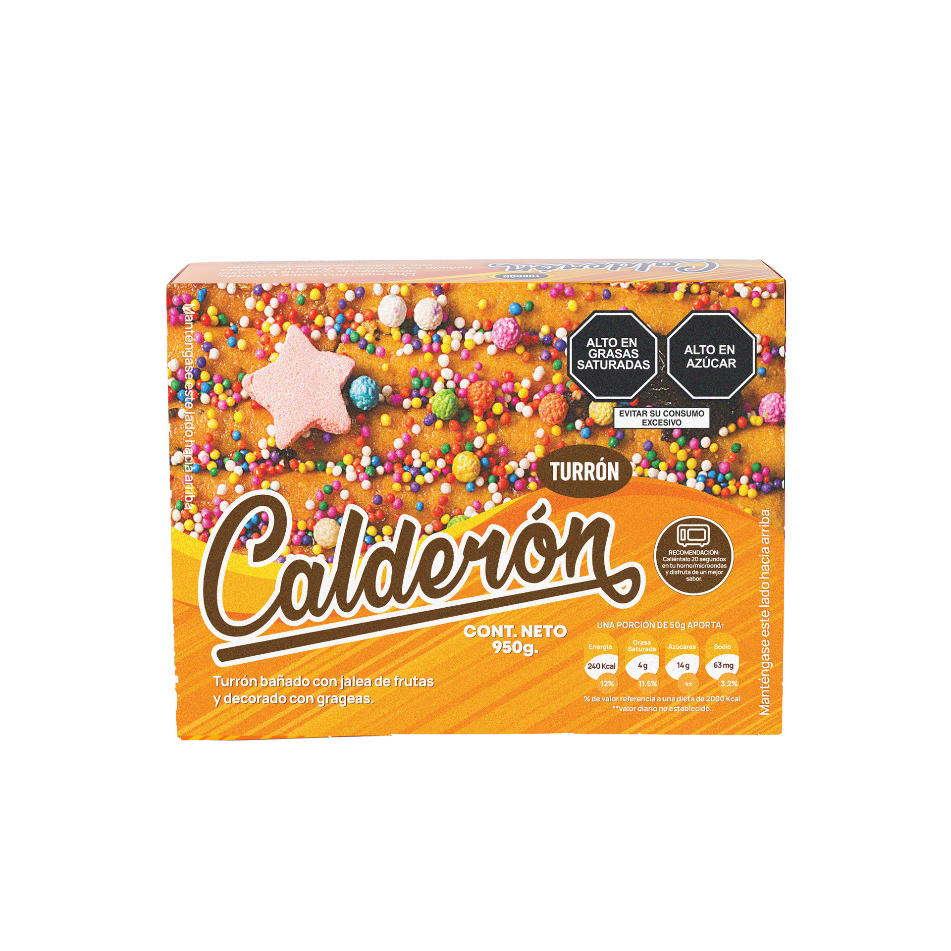 Turrón tradicional de 950 gr hecho en masa suave con miel de frutas, grageas y confites.