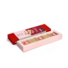 5 deliciosos turrones de 70 gr. cada uno (3 turrones decorado con grageas de san valentín y 2 turrones decorado con ajonjolí), presentados en una elegante caja, ideal para sorprender este San Valentín.